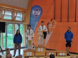 Rudi musste sich in seiner Gewichtsklasse gegen 3 weitere Gegner beweisen und tat dies auch. 3 Kämpfe, 3 x gewonnen und damit Platz 1. Besonders ist hier die Fußfege aus dem zweiten Kampf hervorzuheben, mit welcher er direkt Ippon erzielen konnte. Eine solche Technik sieht man sonst nur bei den „großen und erfahrenen“ Kämpfern. Beeindruckende Technik, unbedingt dranbleiben!